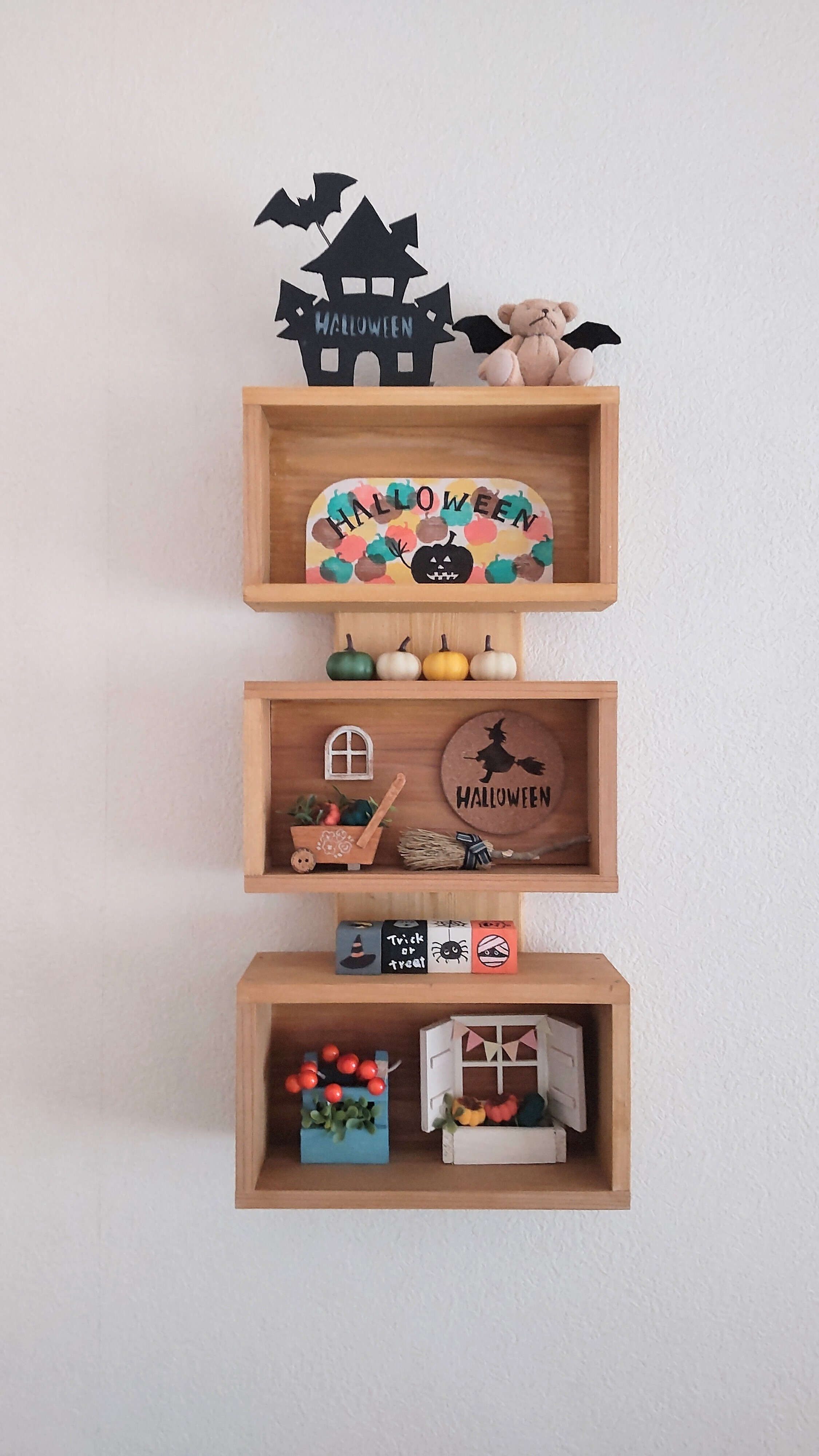 軽くて小さい物を飾るのに、ディスプレイシェルフは大活躍です( *´艸`)