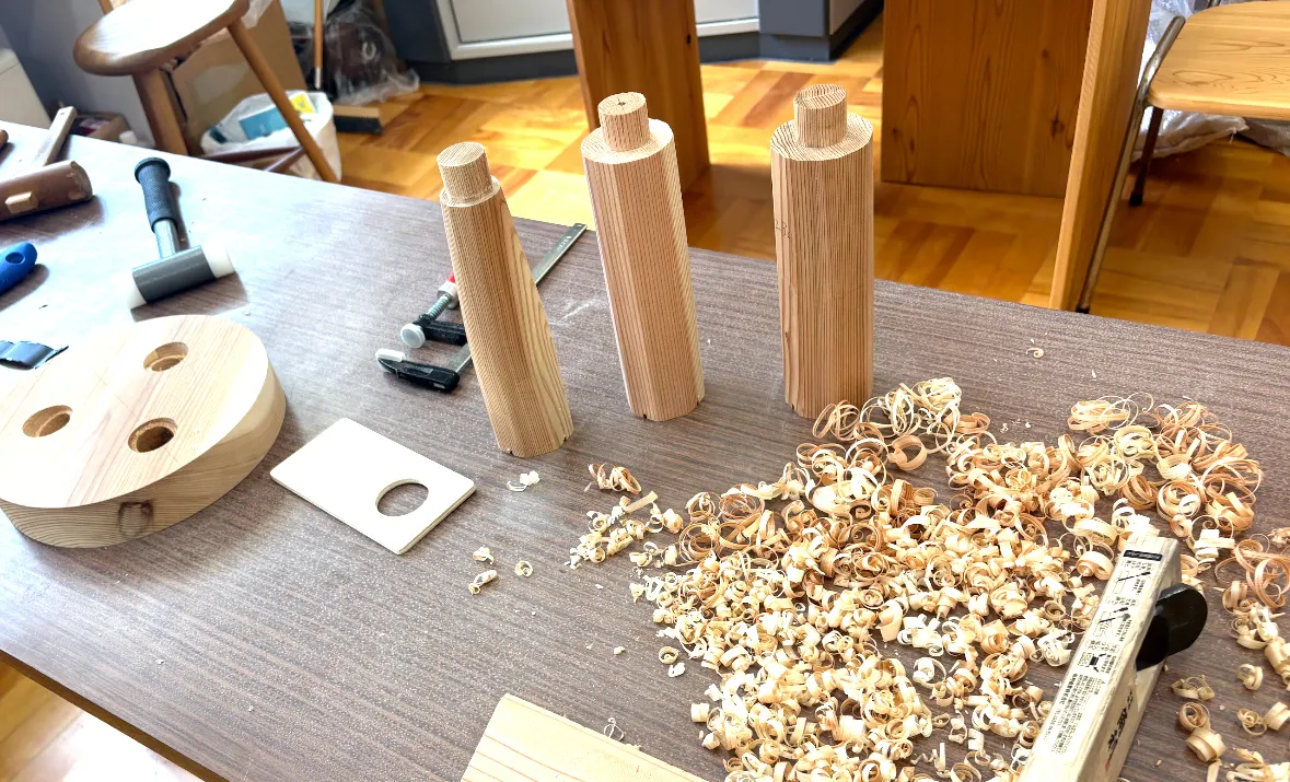 10〜17時までくらい(休憩あり)ただひたすら、木のヘリをカンナで、削る、削る、削る……