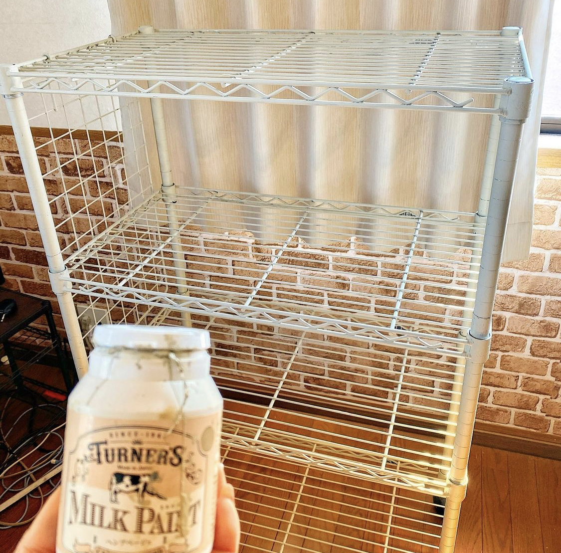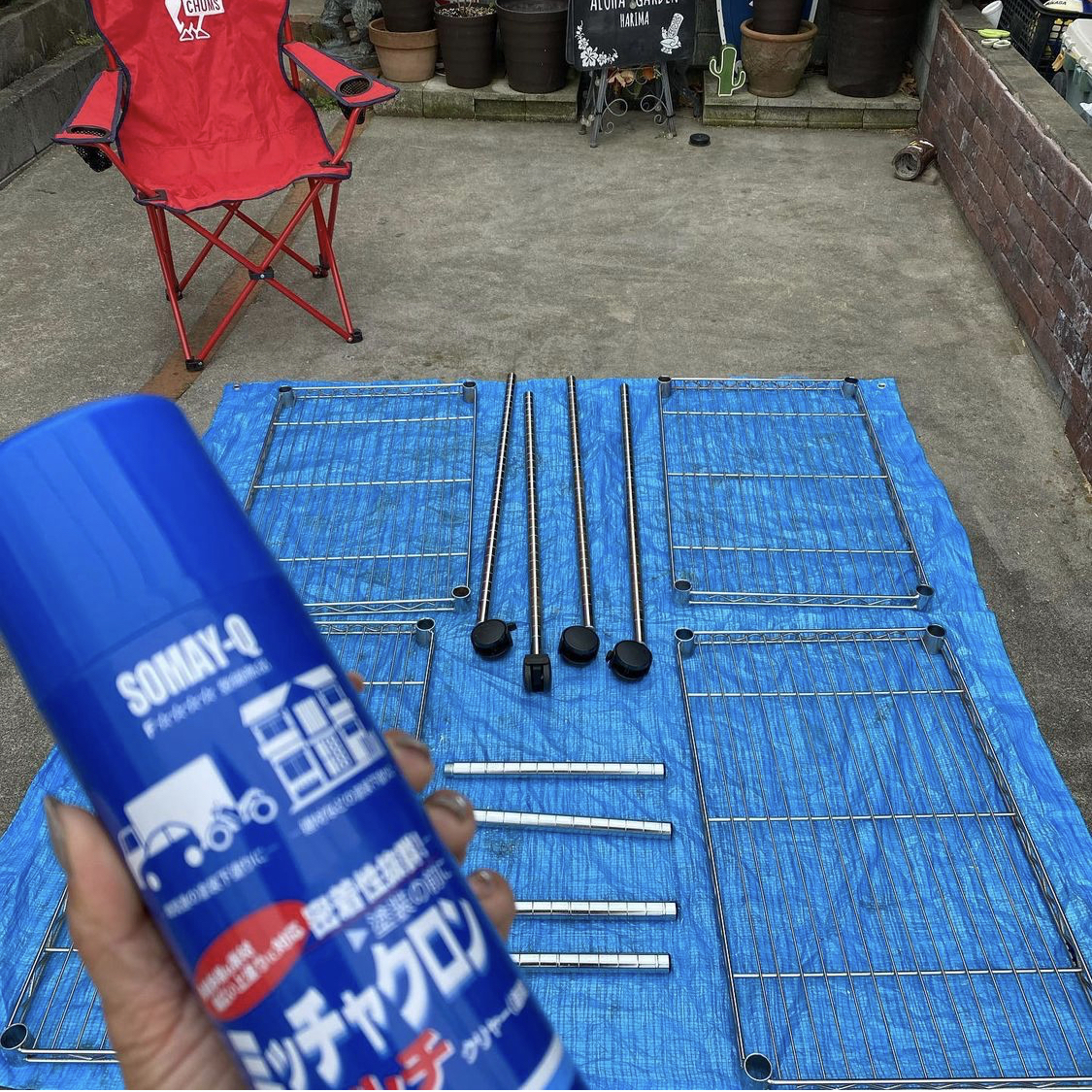 投稿を表示わが家にもあります~😱 色褪せてって言うのでしょうか❓ スチール部分が汚くなった、スチールラック… ペイントするの良いですね💞