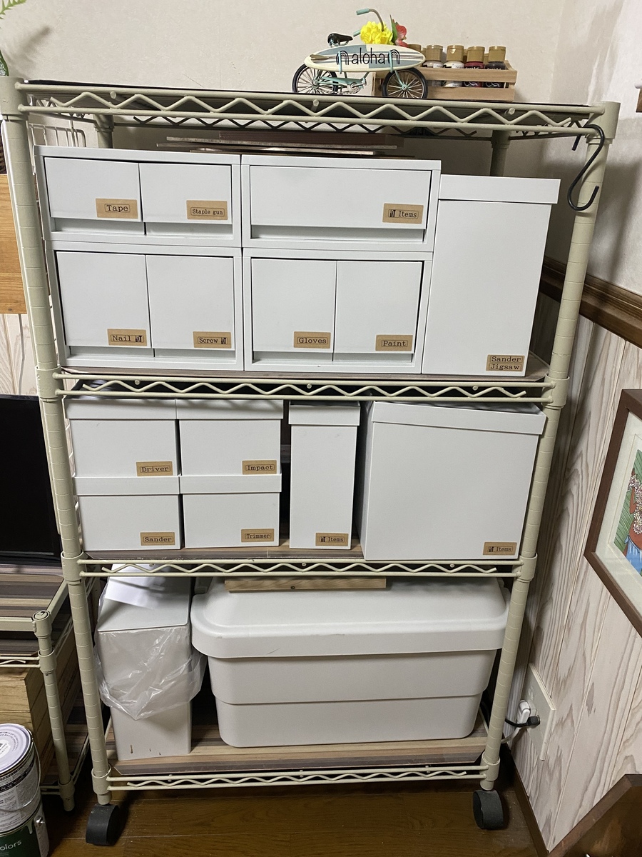 キャスター付きスチールラックをリメイクして工具棚にするのは良いアイディアですね😄