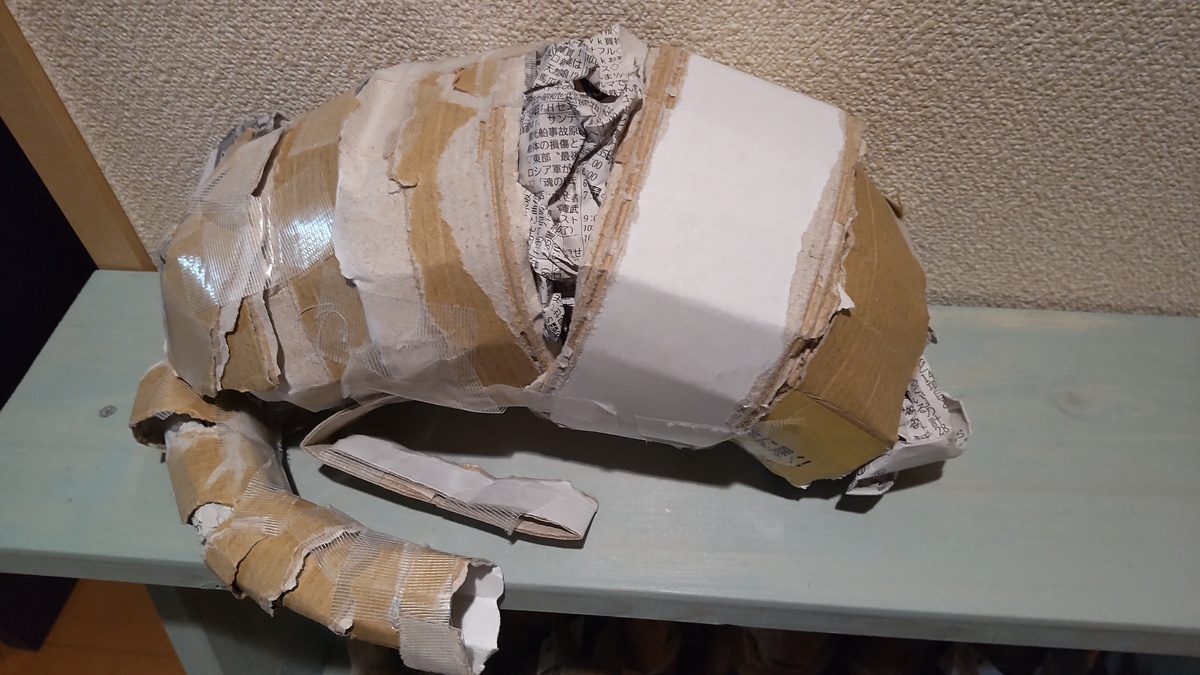 ワイヤーを核の芯に使えば良かったかな〜と思ったところで、段ボールビリビリは止まりません(๑•̀ㅂ•́)و✧