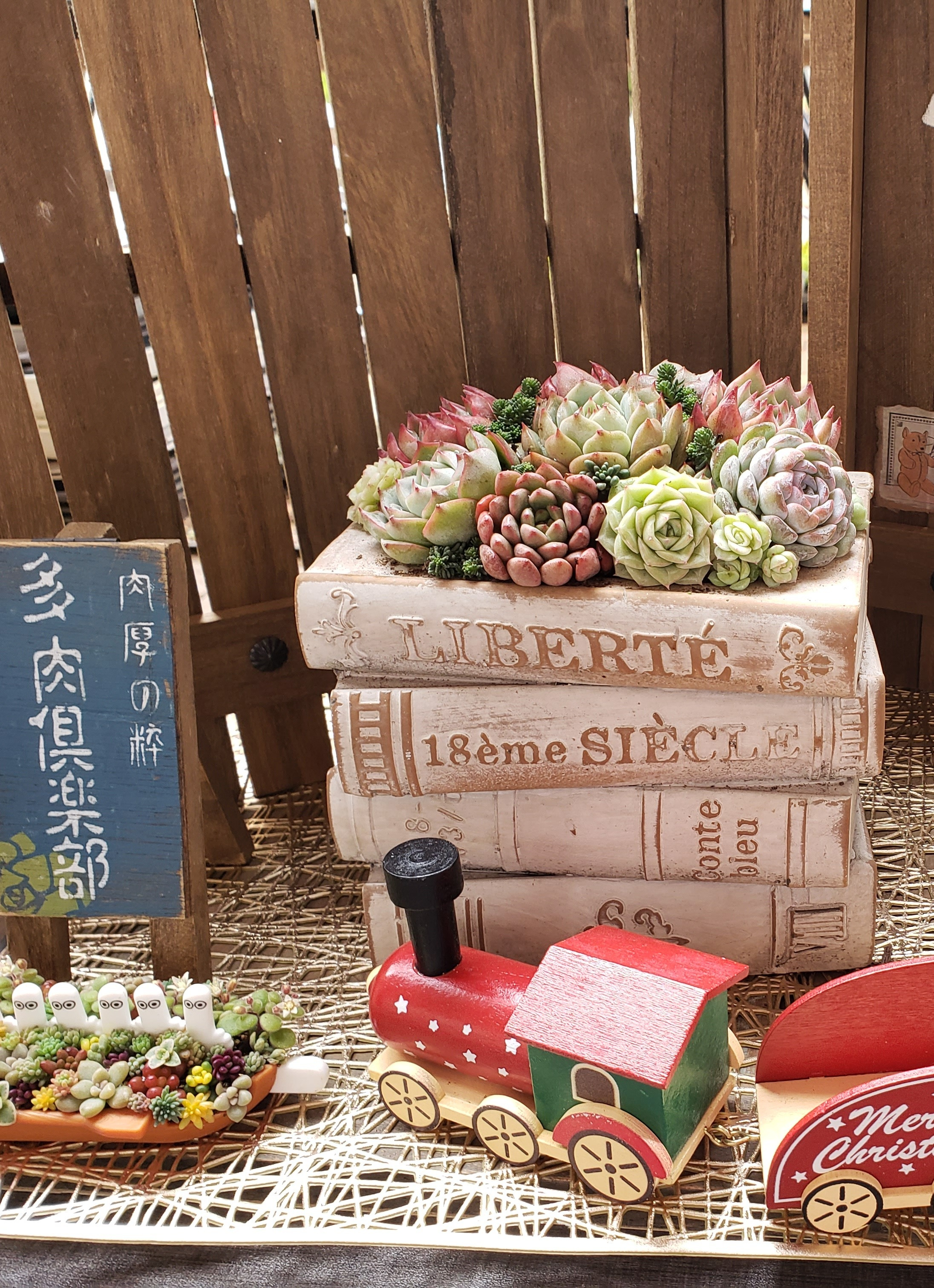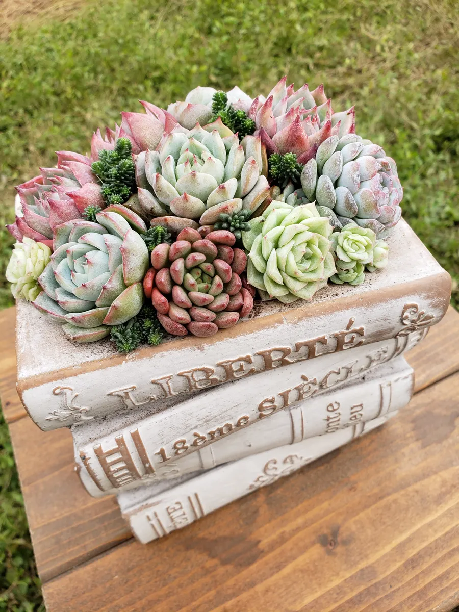 投稿を表示お洒落なBook鉢に綺麗に紅葉した多肉さんたちがもっりもりでとっても素敵な寄せ植えですね😍❤️