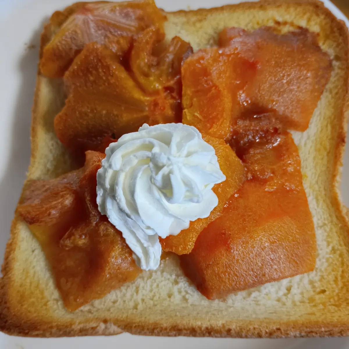 投稿を表示柔らかい柿を焼いたらきっとジャムのようですね🍞ホイップクリームあるからスイーツ🤤