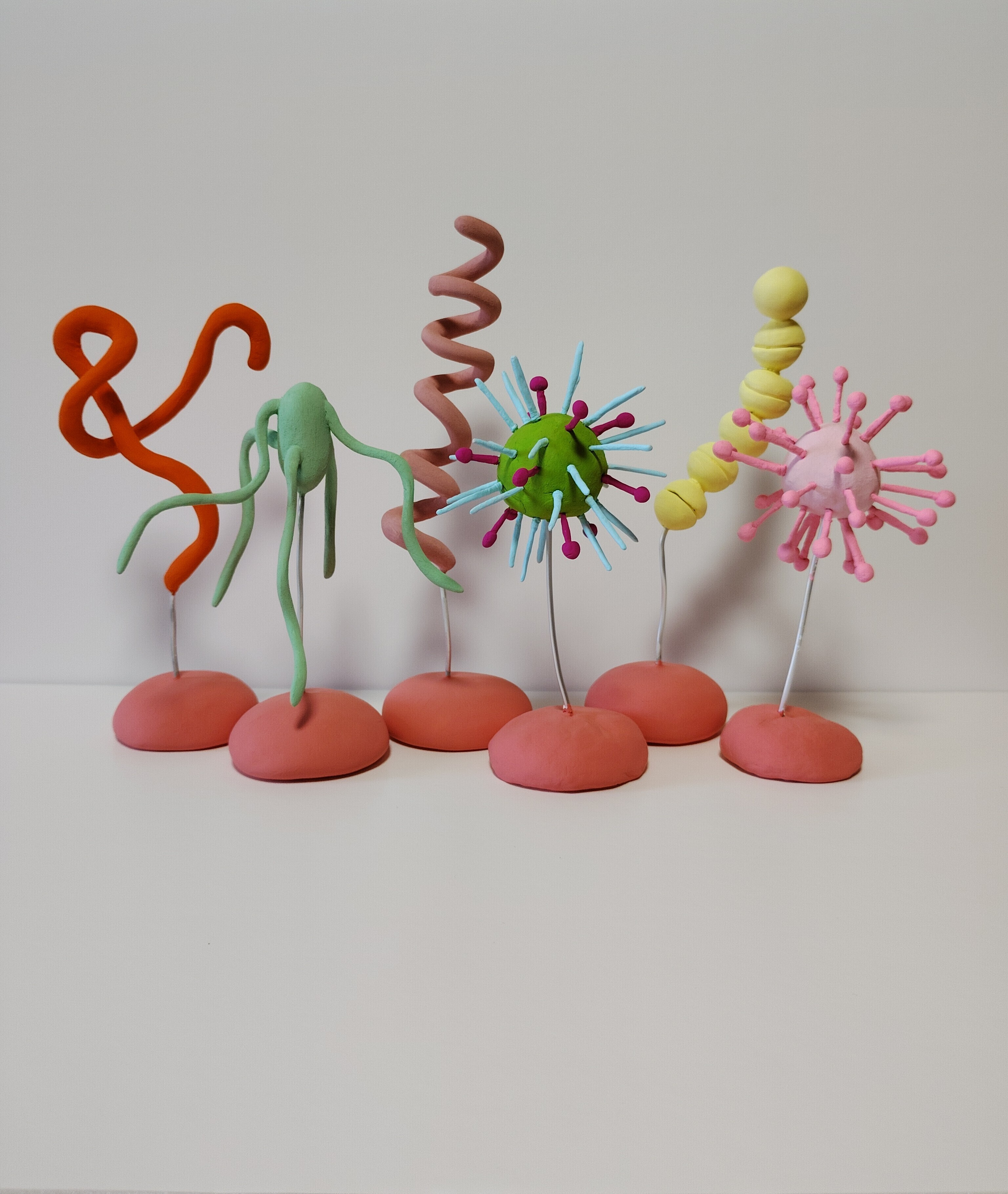 トップ > DIYアワード2025 > キャンペーン > 菌とウイルス ふじこ 2025/10/02 14:11 菌とウイルス ■作品内容 菌とウイルスを作りました。 石粉粘土とアルミのワイヤーで作りました。 色は実際のものと異なります。 左から、エボラ、O-157、梅毒、インフルエンザ、溶連菌、HIV、です。 ■こだわりポイント 嫌われ者の菌とウイルスですが、 その形は美しい。 こういうのを飾るのもいいと思います。 色は、私がイメージする色です。 土台の色は、筋肉をイメージしました。 いいね 共有する 共有する X LINE リンクをコピー コメントする 2 件の返信 (新着順) ミュートしたユーザーの投稿です。 投稿を表示 ちーず 2025/10/02 19:13 独特の世界観🦠 色が鮮やかでちょっと可愛く見えてきました ガチャとかあったら人気でそうです😆 いいね 返信する ミュートしたユーザーの投稿です。 投稿を表示 ナオ 2025/10/02 17:20 不思議だけど、なんか気になる☺️ 色も可愛い😍 いいね 返信する