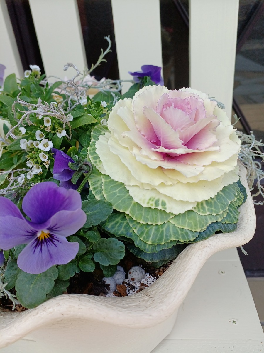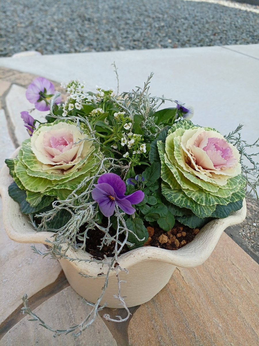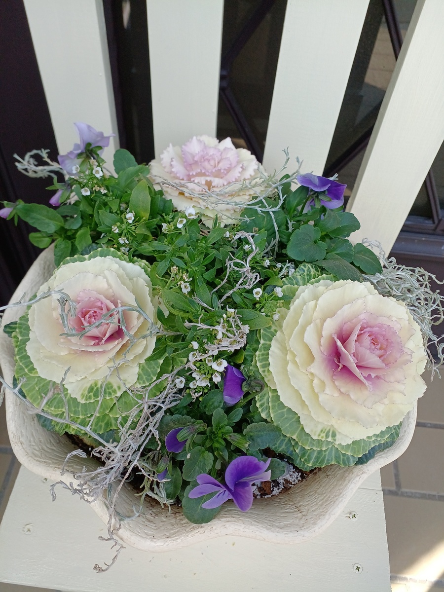 葉牡丹の寄せ植えとても素敵ですね。💕
