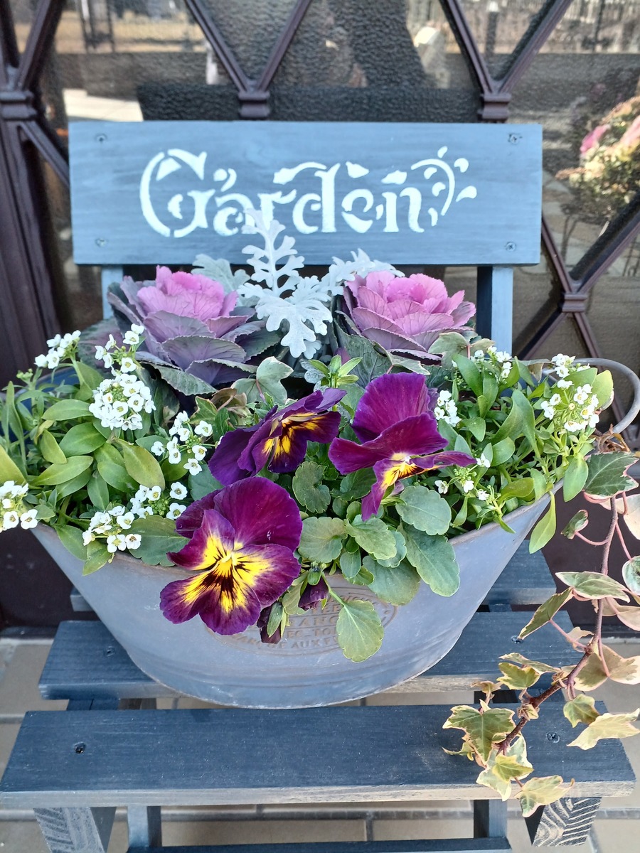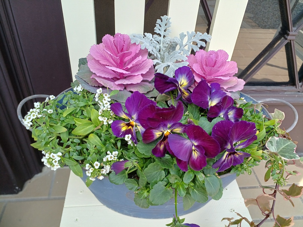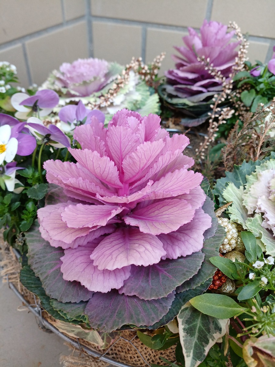 葉牡丹の寄せ植えとても素敵ですね。💕