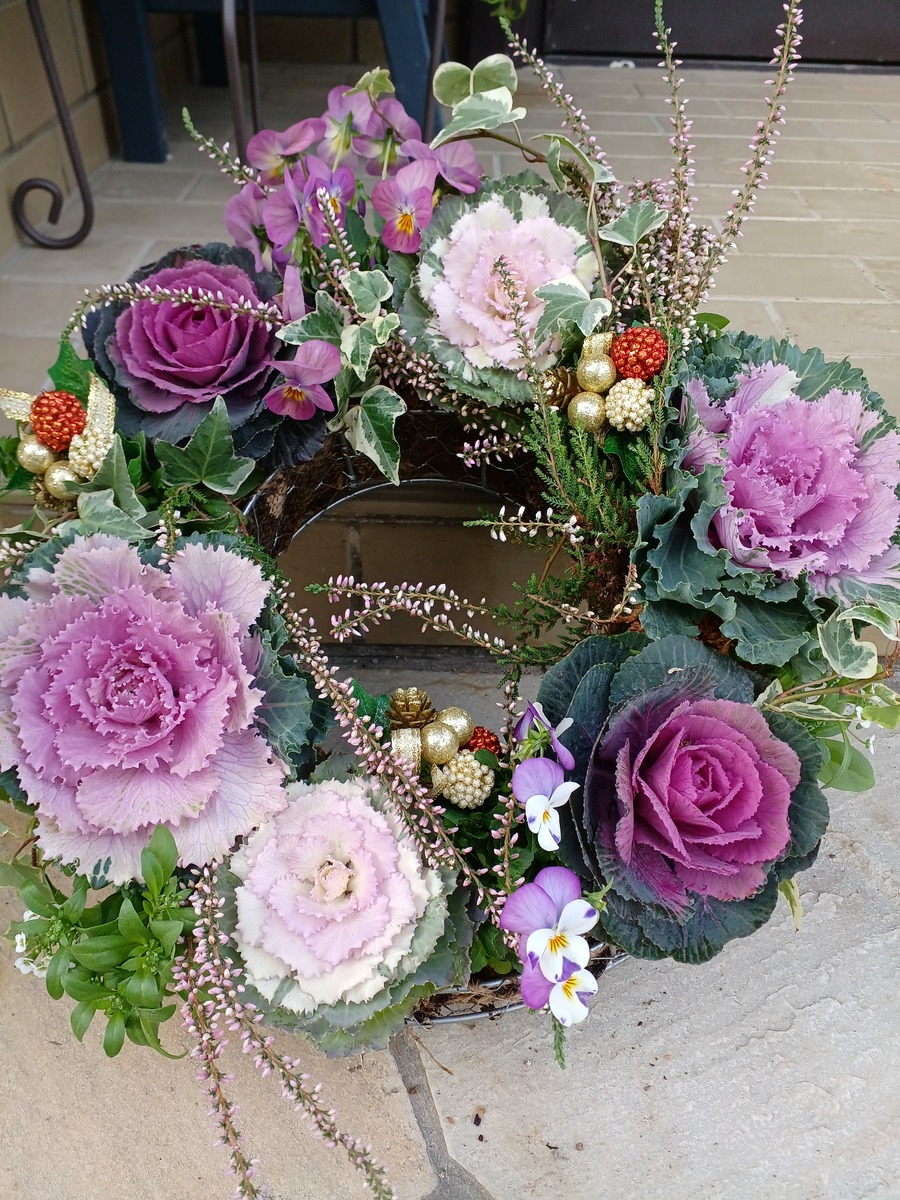 リースの葉牡丹なんて、薔薇の様ですものね。