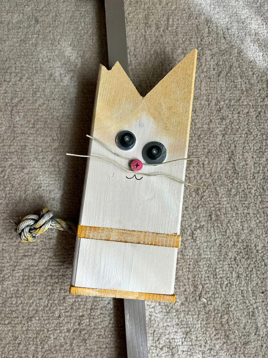 あと、ボルトのお鼻をピンクに、黒い針金のおひげを白に、黒いナイロンロープのシッポをベージュと黄色でしましまに塗ってみました。