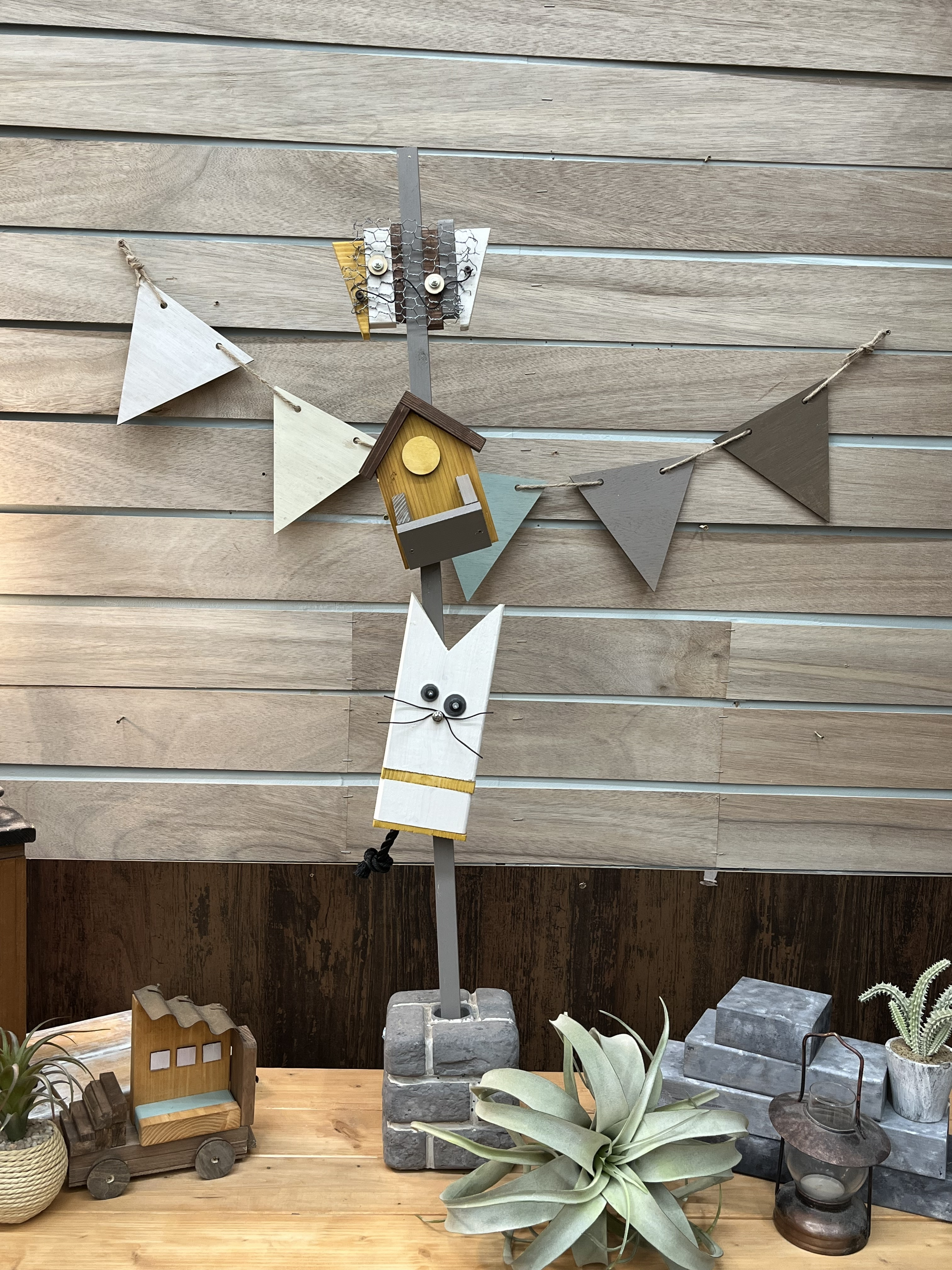 猫の飾りは我が家の猫柄にしたくて、ワークショップでは白に塗って、家でアレンジしてみました。完成後がコチラです。