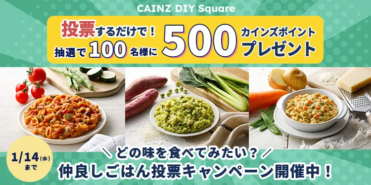 投票していただいた方の中から抽選で50名様にカインズポイント500Pをプレゼント🎁