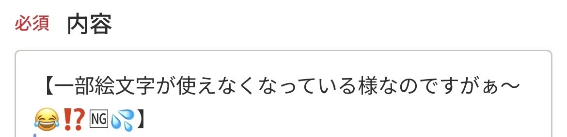 (う〜ん、コレは「お問合せ」をマークダウンで入力しようとした時のスクショですが、今回テキストで書き直したら同じく使われている絵文字の🆖が異なる結果となっています🆖👀💦)