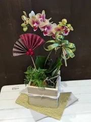 迎春升アレンジ 本日は名古屋みなと店でワークショップでした。正月も近いので、おめでたいものを作ってきました。写真を場所を変えてとってみましたが、やっぱりこれについては背景が黒のほうが締まる感じがします。ちなみにグリーンの中だとわちゃっとします。背景が白いとこんな感じ。