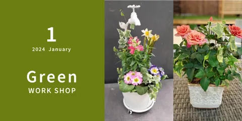 1月のGreenワークショップメニューをご紹介! 皆様、こんにちは!CAINZ DIY Square運営担当です✨1月のGreenワークショップのおすすめメニューをご紹介致します♪今月も皆様に楽しんでいただけるよう、季節の花を使用したGreenワークショップをご用意いたしました❕🌼ジャグチブリキの寄せ植え 02可愛らしい蛇口モチーフの鉢に、季節の花