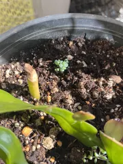 何時だったかに(もう2年くらい前かな?)要らないって言ったのに無理やり押し付けられた月下美人の苗😭 植物に罪は無いのでとりあえず育ててるって感じ(水あげてるだけですが😅) 今日ベランダでお手入れついでに鉢を覗いて見たら… パープルヘイズのちっこいちっこいのが根付いてる😆