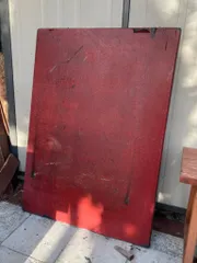 古い座卓を真っ二つにして雑草対策 ↑数十年前に使ってた古い座卓を解体して家庭菜園の一角の雑草対策を講じました。ゴミ処分場に持って行こうか迷ったまま屋外に置きっぱなしにして、半年が過ぎました。脚部分を外して天板を丸ノコで半分にカットします。厚さ45㍉、手持ちの丸ノコでギリカット可能な深さです。↑丸ノコガイドがわりに平板をビス留めして対