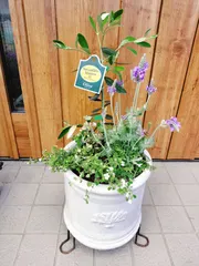 シンボルツリーの寄せ植えにちょこっと追加 昨日、シンボルツリーの寄せ植えWSに参加しました😆選んだオリーブはネバディロブランコ。多分、私意外、今回のWSは全員ルッカ…😅半直立性のオリーブになります。苗が選べるのなら、開張性ではなく直立の苗を選ぶつもりでした。家の庭は狭いので広がると狭い…😥オリーブの結実はあまり重要ではなく😅以前15年ほど育