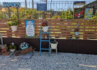 駐車場フェンスのB&B作品 通りに面した駐車場のフェンスに飾ったB&Bサインボードたち🚗🚙どれも夢中になって作った作品です☝️ステンシルしてるときはすごい無口😅楽しくて、終わると次は何を作ろうかなぁってなります✨✨ソーラーライトの下は、季節の物を飾っています👌ハロウィンの時期はこれ😊(飾ってるところ撮ってなかった(^_