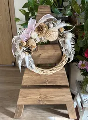 フラワーアレンジメント教室で昨年、作ったリース。ドライ系が入っているので、少し茶系。いつか、もっと白っぽい色合いのも欲しいなと思っています^ ^