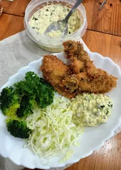 牡蠣フライに手作りタルタルソース、添えました。 年末の戦利品の牡蠣🦪、お昼に牡蠣フライにして、食べました。買ってた事を危うく忘れそうでした。危ないなぁ😂😂😂😂息子注文でタルタルソースを自作。玉ねぎ、胡瓜、ゆで卵、マヨネーズ、酢、レモン果汁、パセリ、塩、胡椒、甘酢生姜 何度も味見したけど何か足りない🤔食卓で塩分足して解決。たっぷり作った筈