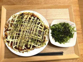 今日の夕飯シリーズ♡ 冷蔵庫の野菜室の整理も兼ねて、餅入りお好み焼きと、プランターで栽培した春菊の韓国風サラダを作りました♡https://diy-square.cainz.com/announcements/esq4nys59ueahoet 柔らかくて美味しかった💕たまに無性にソースものが食べたくなるんです🤭