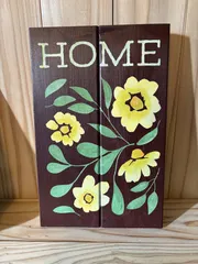 タイニーサインボード 予約サイトの見本が可愛くて真似っこ?!しています。(ベースの色は違うかも)写真はチョコレート色に見えるかもしれませんが赤紫色です。はじめはトントンしているのですが、最後の仕上げになるとベタ塗りしちゃうんですね😅黄色のお花が🌼可愛くてお気に入りのボードが増えました💕