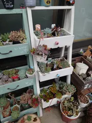 苦労して作られた3段シェルフに、 Tagさんの素敵な多肉さんが飾られて、とてもお洒落ですね💖 可愛らしい取っ手も良いですね🥰