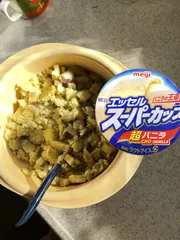 簡単スイートポテト ■材料さつまいもバニラアイス■調理時間30分弱■作り方畑で収穫した細めのサツマイモを皮を剥き1cm程の輪切りにしレンジでチン!柔らかくなったさつまいもを麺棒で潰す アイスは溶ける程度にレンジでチン 潰したさつまいもの中に溶けたアイスを入れてかき混ぜて容器に入れて冷蔵庫へ