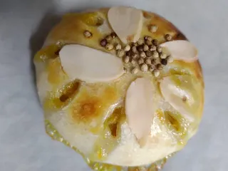 カボチャあんぱん ■作品内容カボチャでカボチャあんぱん ■こだわりポイント収獲したカボチャで餡を作り、カボチャあんぱんにしました😊飾りに胡麻とアーモンドスライスを乗せました