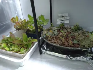 ■作品内容 冬は暖かいお部屋でグリーンを楽しみます! 根付きもよく元気に育ってます。 ■工夫ポイント暖かい風にあたらないように気をつけてます。土が乾けばお水をたっぷりとあげてます。※以下多肉ハック部門のみ入力■材料 ポトス、コウモリラン、エアープランツ、パキラ、カランコエ、アオエ