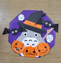 ハロウィン🎃リース ハロウィン用のリースを折り紙で作成🎃 玄関に飾りたいから、ラミネートして飾る予定です☺️