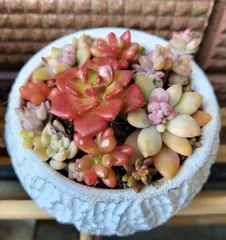 ■作品内容この時期は紅葉する多肉ちゃんに癒されます! ■工夫ポイントあまり高さが出ないように、低めにぎゅぎゅっと寄せ植えしてます