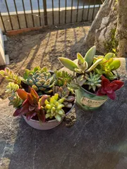 多肉の寄せ植え 地元の公園でマルシェが月1回開催され、毎月の楽しみです(緊急事態宣言中中止😭)少し前から多肉を始めて、今回も新しい仲間が増えました。左側の一番大きい白レンゲ以外は5ポット300円 初心者には、手を出しやすいリーズナブルな価格が有難いです❤️
