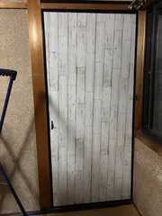 戸襖ようやく形になりました。カインズ壁紙用両面テープを張りめぐらし、お得に買えた壁紙をプラダンに貼りました。2枚貼り合わせたので歪んでしまい、なんだかいびつな出来上がりです😭貼り直しもきかず、私以外目にする人もいないか!と開き直り最後までたどり着きました。これで次に劣化したらまた考えます。お見苦しい