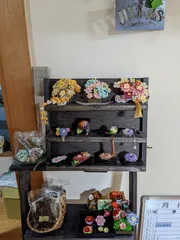 マルシェ棚 21日から始まるつまみかんざし教室の作品展の掲示に使えるよう本日、マルシェ棚作ってきました!以前つくったはしご風棚?の上に乗るかな?と思ったのですが何とか収まりました。地震は危ないかもですが😅 上段に普通サイズのかんざしも置けたのでなかなか使い勝手良い子になりそうです🤗 蓮田店の