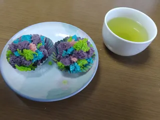 復習⁈素晴らしい‼︎ 紫陽花に見えます。見えます。手作りお菓子でお茶をいただくって良いですね🥰