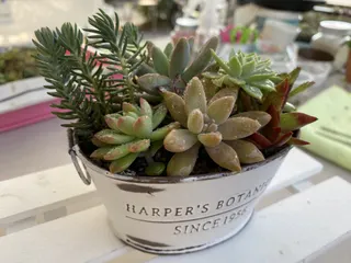 初✨多肉の寄せ植え ALOHA さいたま市にあるCafeで、多肉寄せ植えのワークショップに参加してきました! コレで1,000円で作れるんです😳激安!と思い体験しましたが…ピンセットで多肉を扱うのが💦なんか怖くてブルブル😅震えてしまいました。笑 完成した多肉の寄せ植え販売も沢山されてて、欲