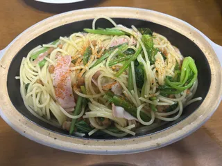 パスタポット 納豆パスタ ■材料 二人分水 適量納豆 一パックパスタ1.6m 約1.5人前ベーコン 2枚湯掻いたほうれん草 適量オニオンスープ 一袋ニンニクチューブ 少々七味唐辛子 ■調理時間600W 9分 ■作り方器に水とオニオンスープ、パスタ、ベーコンをいれる