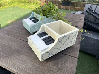 🎹ピアノ型プランター グリーンの方は、以前オリジナルストアで作ったものです。可愛くて二つめ作ってきました😁外で使うか家の中で使うか?思案中⁉️