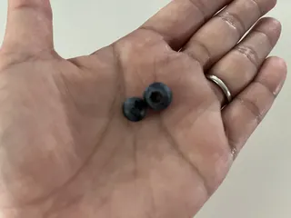 愛情たっぷり賞【楽しみにしてた収穫】 はじめてブルーベリー🫐を庭で🪴 4月頃にいっぱい花をつけてたので、わくわくしてたのに…風が吹いたり、蝶々🦋や蜂🐝やいろいろ遊びにきてたからか…収穫は2粒だけ😅 ああのいっぱいあった花は…🤣 防虫ネットとかした方が良かったのかなぁ? 来年リベンジ💪2粒でも愛情は