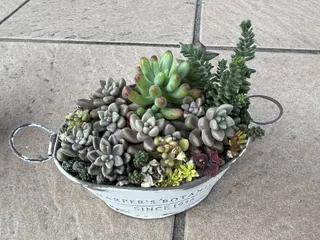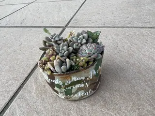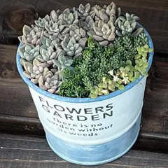 多肉寄せ植え 頂いたリメ缶が可愛い 多肉寄せ植え