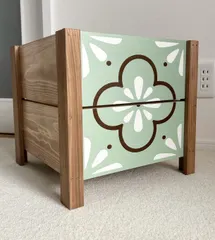 先日、ボックスプランターのWSに参加しました☺️ 印をつけて、穴をあけて、ベースの色を塗って、組み立ててからのステンシルだったのですが、今回は印つけが一番の難所でした😅 ベースのステインはウォルナット、正面グリーンはなんとかグリーンにブラックを少しだけ混ぜました。&n