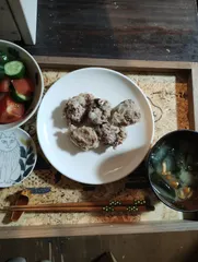 今日は肉シュウマイ 久々シュウマイ作りたくなってフライパンでキャベツを敷いて作ってみました🥰スーパーではトマトときゅうりがおいしいそうだったので塩とお酢でサラダを作りました✨