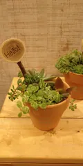 一緒に参加した方の鉢と(o^^o)今日は素焼き鉢にステンシルして多肉植物の寄せ植えをしました。初ステンシルで失敗しましたが(⌒-⌒; )多肉話に花が咲いちゃいました(^^)