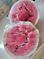 庭に捨てたスイカの種からこんなになりました あまり大きくなっていませんがすごく甘いスイカ🍉になりましたლ(´ڡ`ლ)
