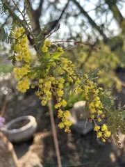 2回倒れたミモザ😅 我が家の2回倒れたミモザが一枝咲いていました😍皆さんにご心配をおかけしましたが2回も倒れたのに無事に咲いてくれてホッとしています😁もう少したくさん咲いたらリースやスワッグを作る予定です💕