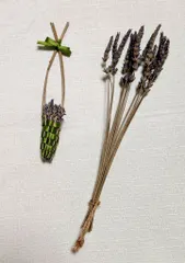 ラベンダーグロッソのドライフラワー 6月に作り吊るし始めたラベンダーグロッソと作ったラベンダーグロッソのバスケットがとってもいい感じにドライフラワーになりました🎶(3枚目が6月)良い香りも~💜