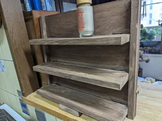 はじめて参加 調味料棚として。女性ばかりの中で男1人。想像していなかったので少し緊張。自分の作業も遅い(笑)でもウチで飾ってみたらいい感じ!皆さんどうですか?また参加したいです!