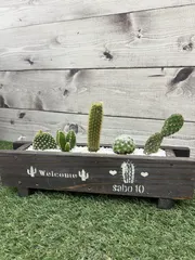横長プランターとサボテン🌵の寄せ植え 午後 楽しみにしていたサボテン🌵の寄せ植え予約できたので午後も参加🎶💕 色はダークブラウンにステンシルはやはりイマイチで💦💦💦練習しないといけません💦💦 ご一緒していただいた皆さんありがとうございます。楽しい時間でした💕🎶 講師の先生方には事前の準備ありがとうございました🙇