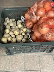 今日は雨降りだったので 今日はあいにく弱い雨が降っています まだジャガイモの収穫は完全には終わってませんが昨日で大体の収穫が終わりました 玉ねぎの陰干しも終わりました いつまでも玄関先に広げて置いていたので片付けるようにとの指示がありました😊収穫用のコンテナに入れましたがやはり今年はジャガイモの収穫が少ないようです 3キロ
