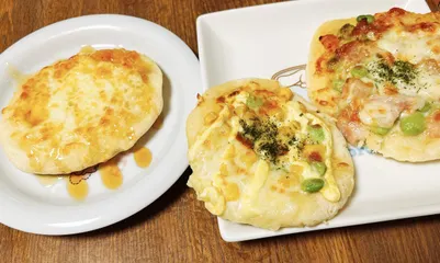 簡単米粉でおやつ(朝ごはんにも) ピザ風も作りました🙌🏻■作品内容米粉を使った、もちもちして美味しいおやつを作りました🙌🏻 アイラップに、米粉・豆腐・BP・はちみつを入れて、粉っぽさがなくなるまで揉み揉み☺️ 分厚くならないように、クッキングシートへ広げて好きな具材とチーズをたっぷり乗せます❣️ あとは